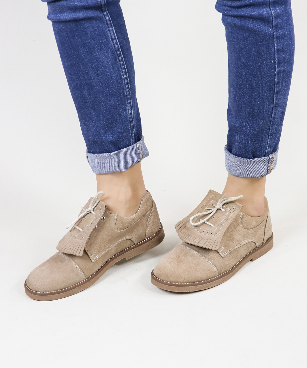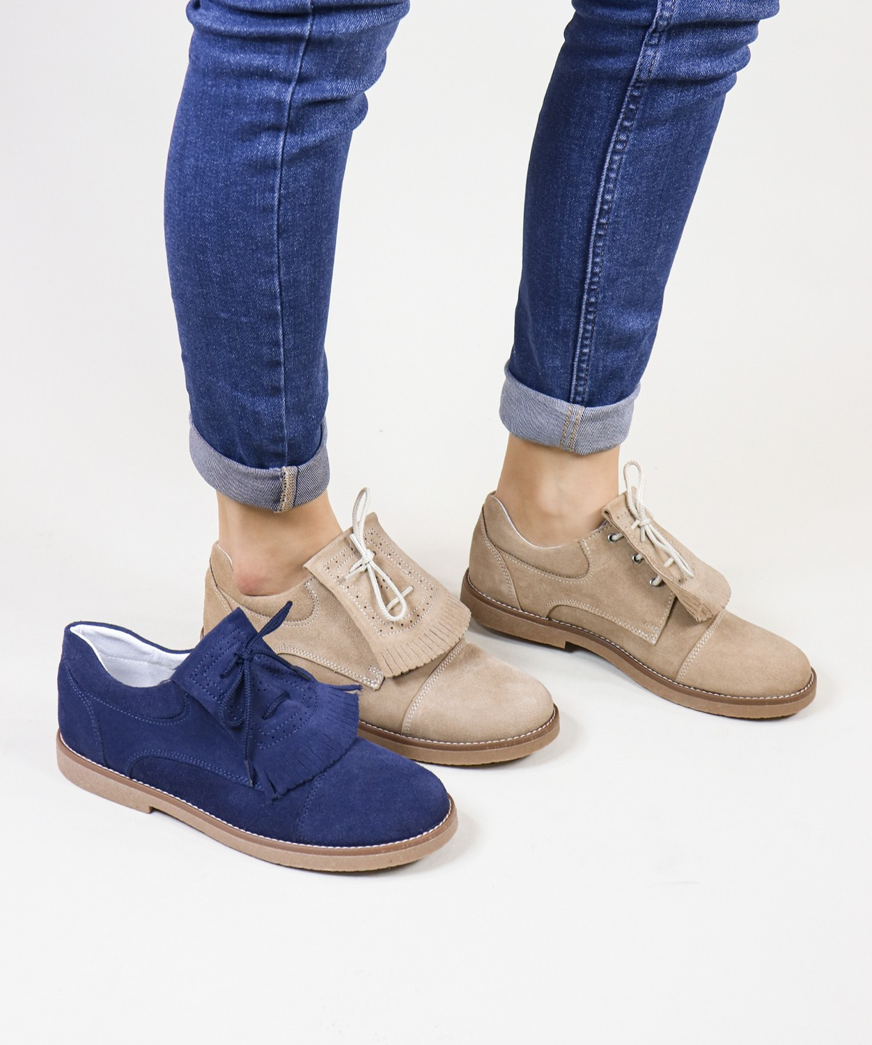Sapatos em pele de carneira de Senhora com Franjas e Atacadores